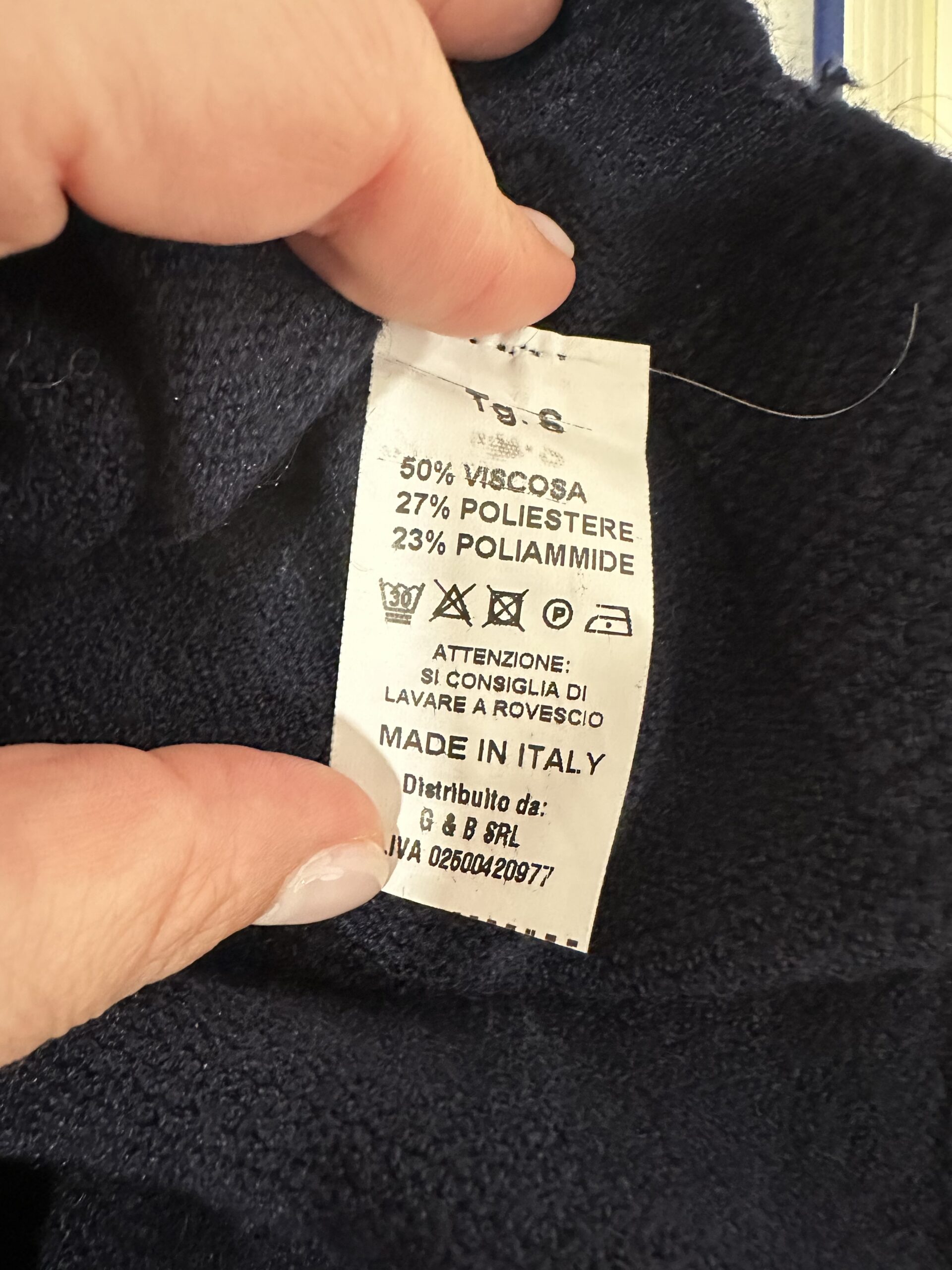Composizione: 50% viscosa, 27% poliestere, 23% poliammide.