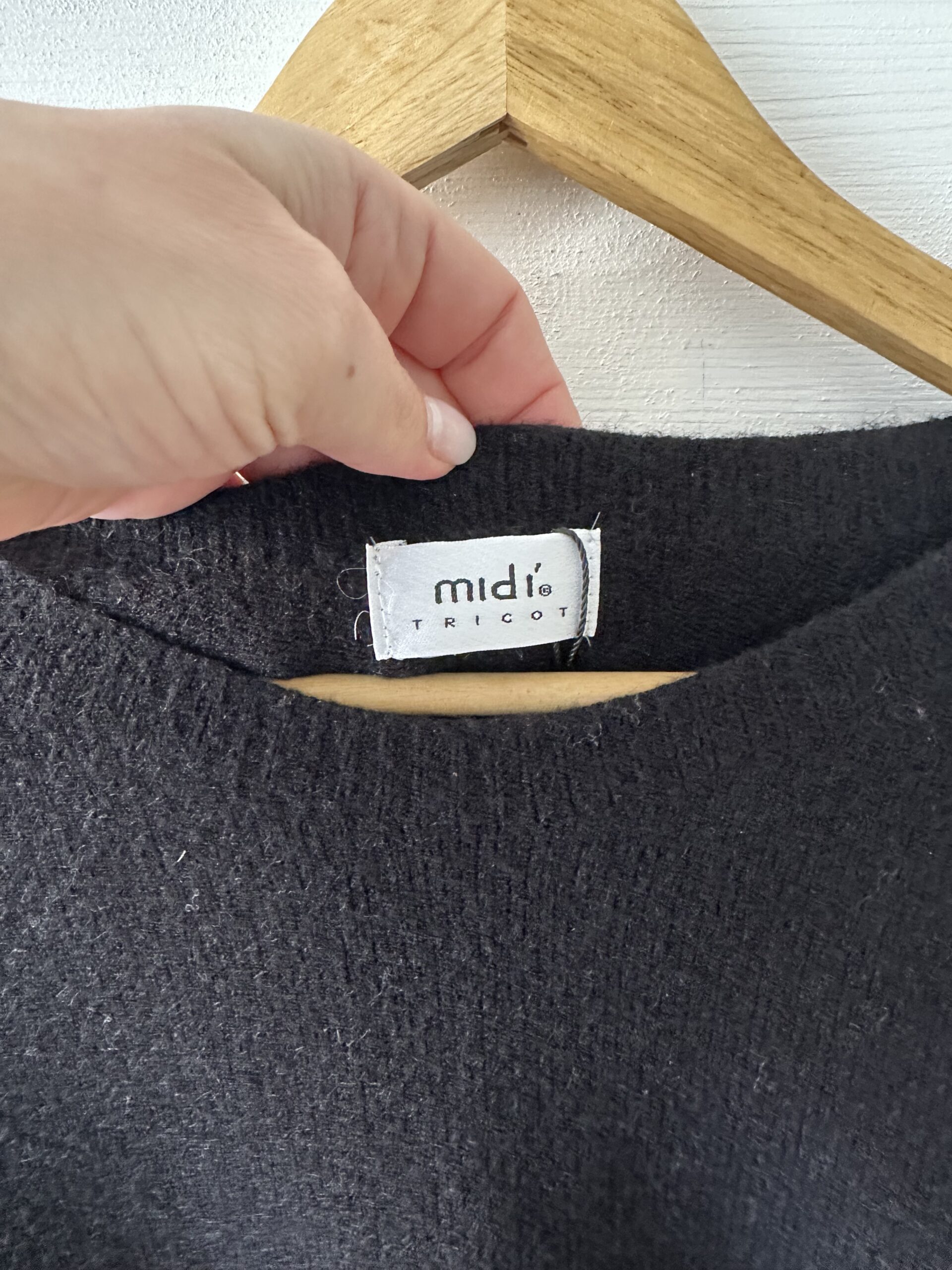 Morbida maglia girocollo nera di Midì.