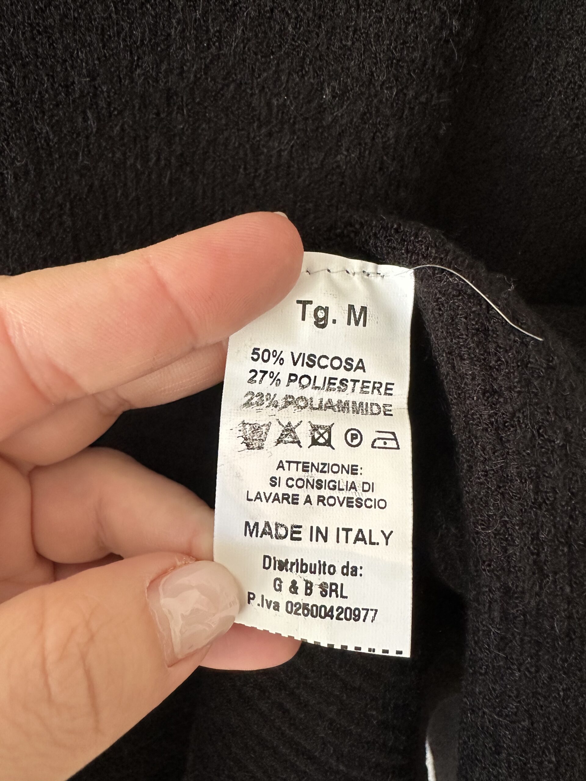 Composizione: 50% viscosa, 27% poliestere, 23% poliammide.