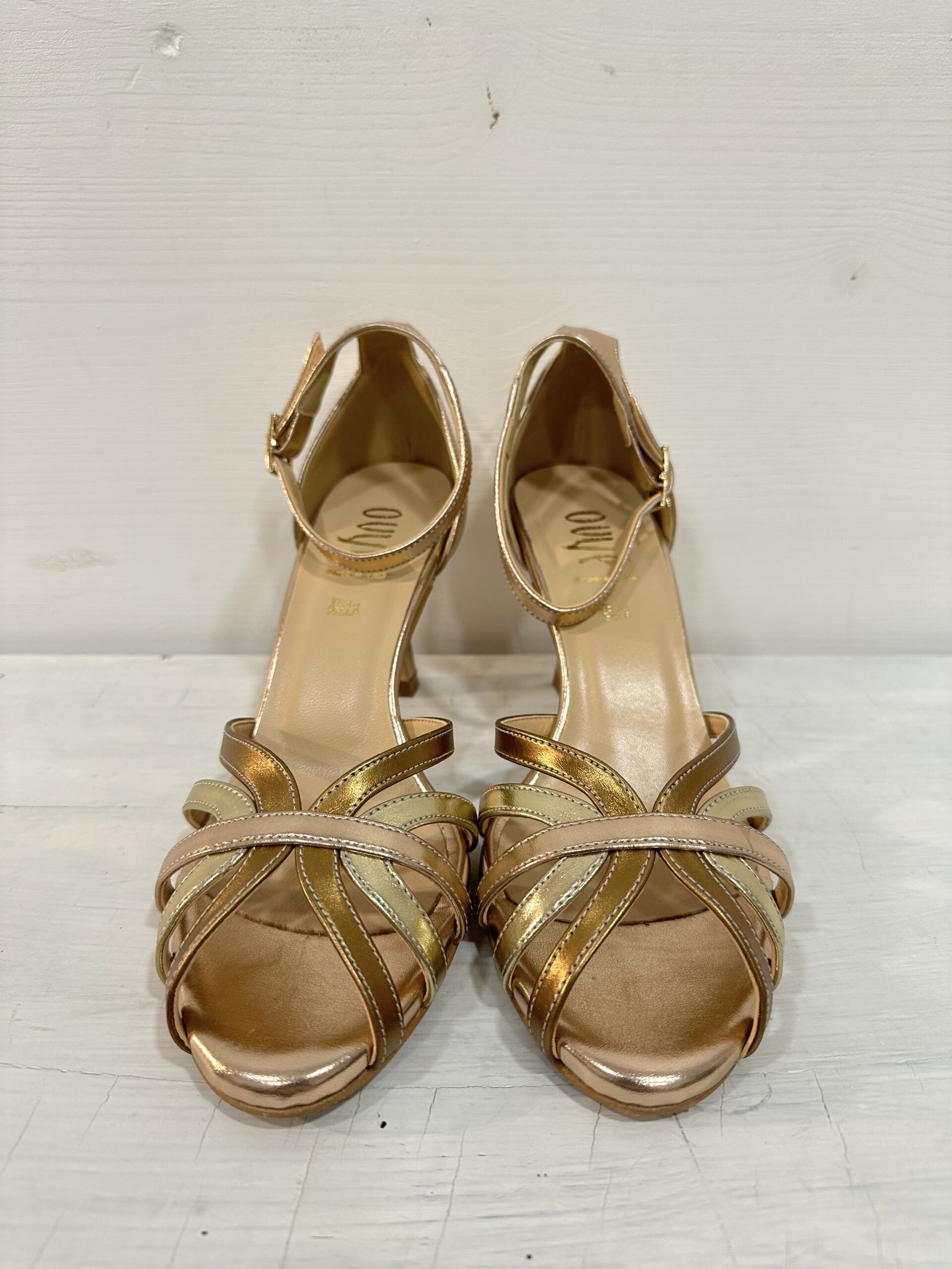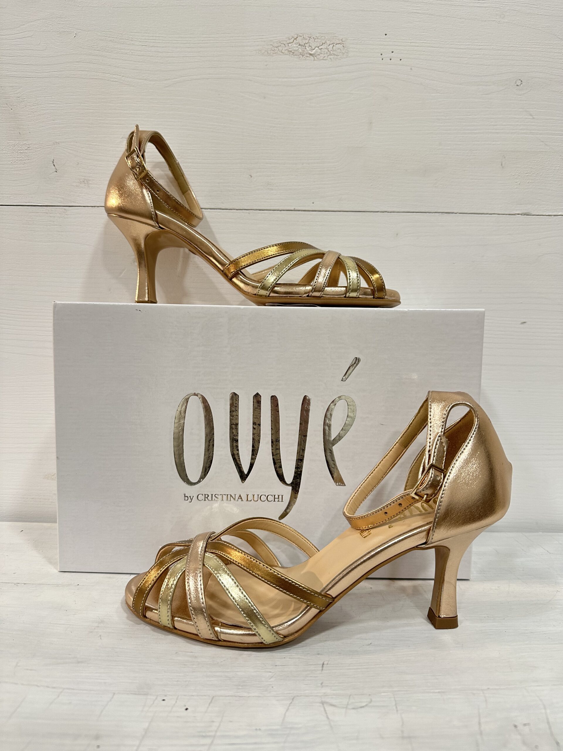 Sandali in pelle Ovyé, 3 ori: bronzo, oro, oro rosa.