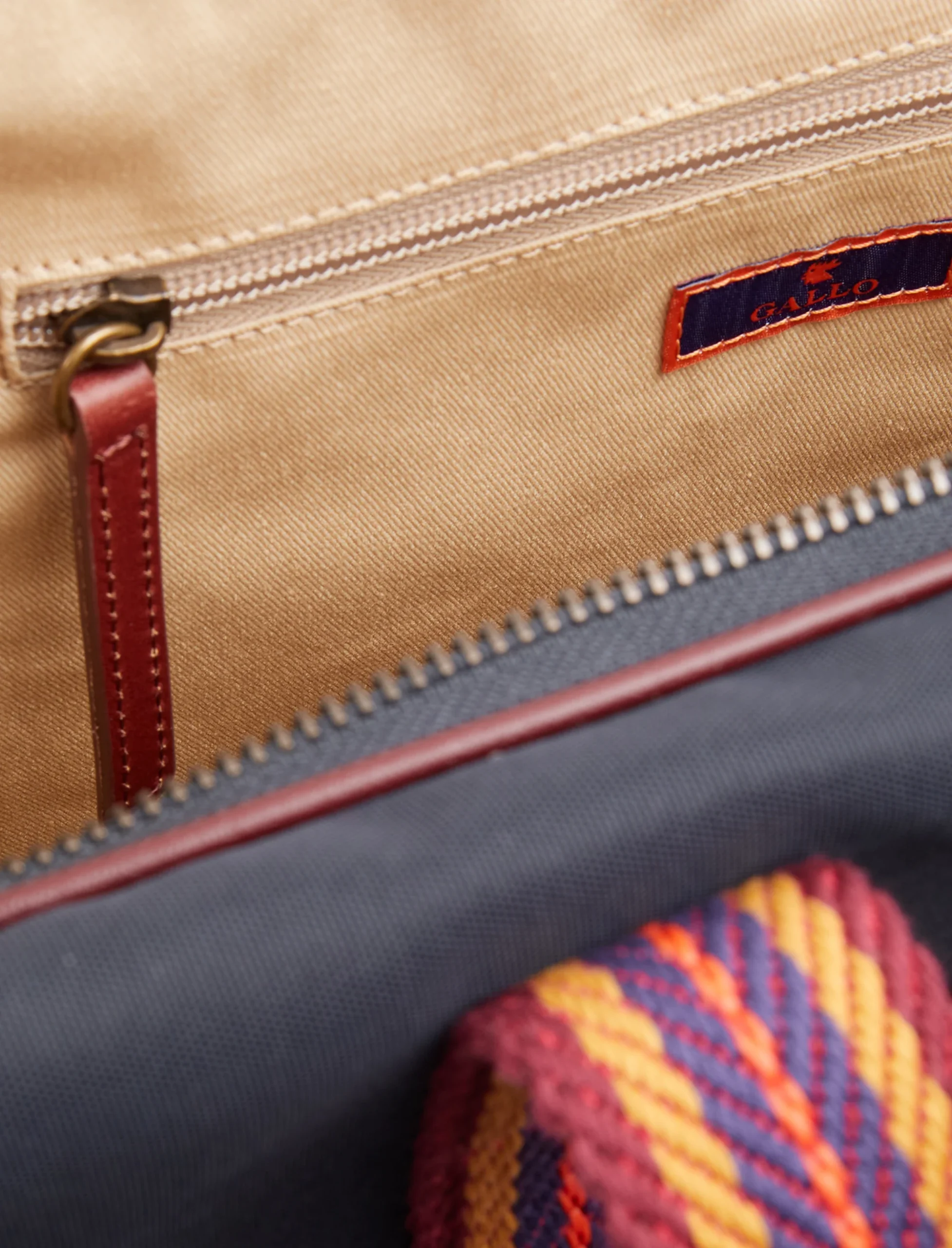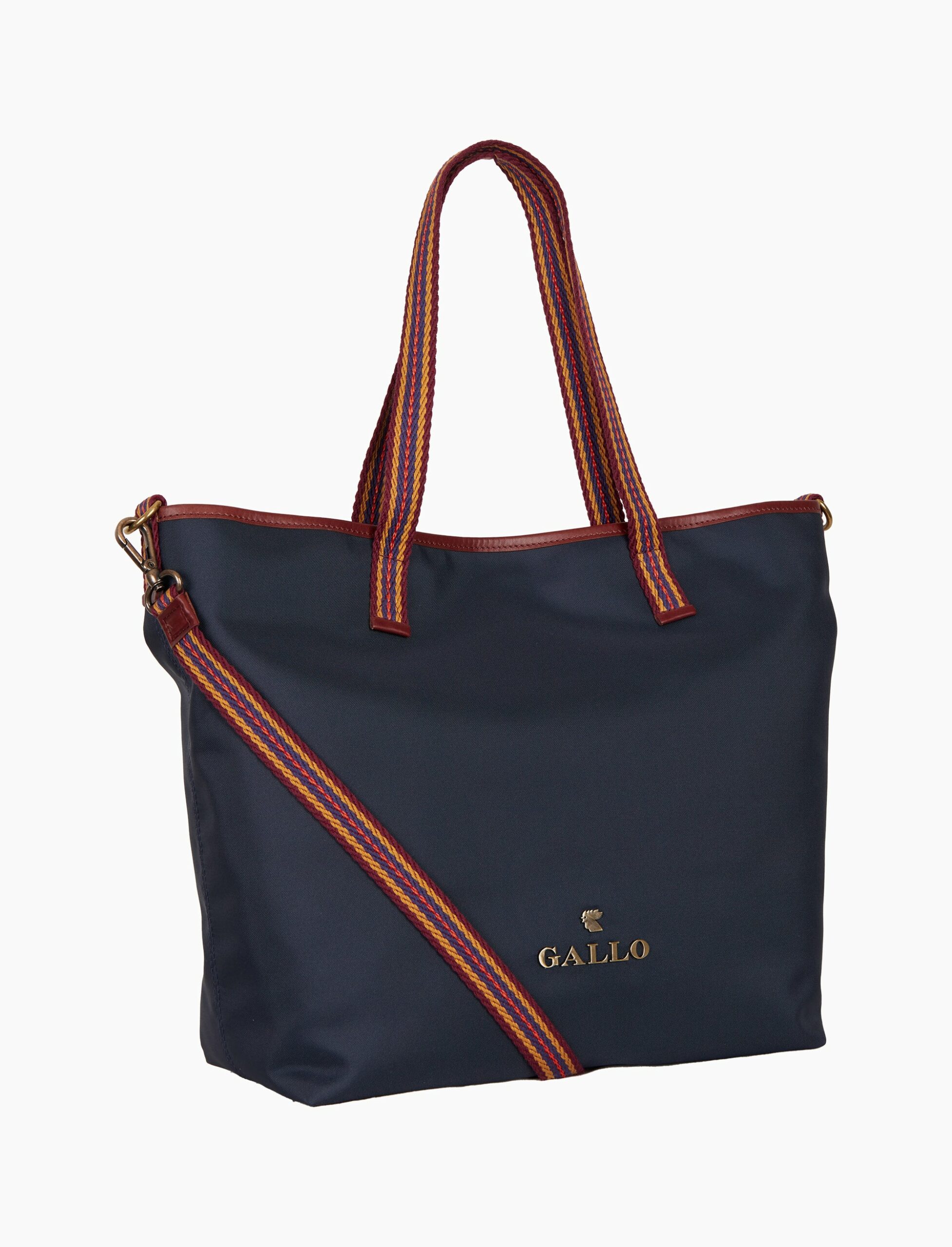 Shopper unisex tinta unita blu con nastro spigato ed inserti in pelle GALLO