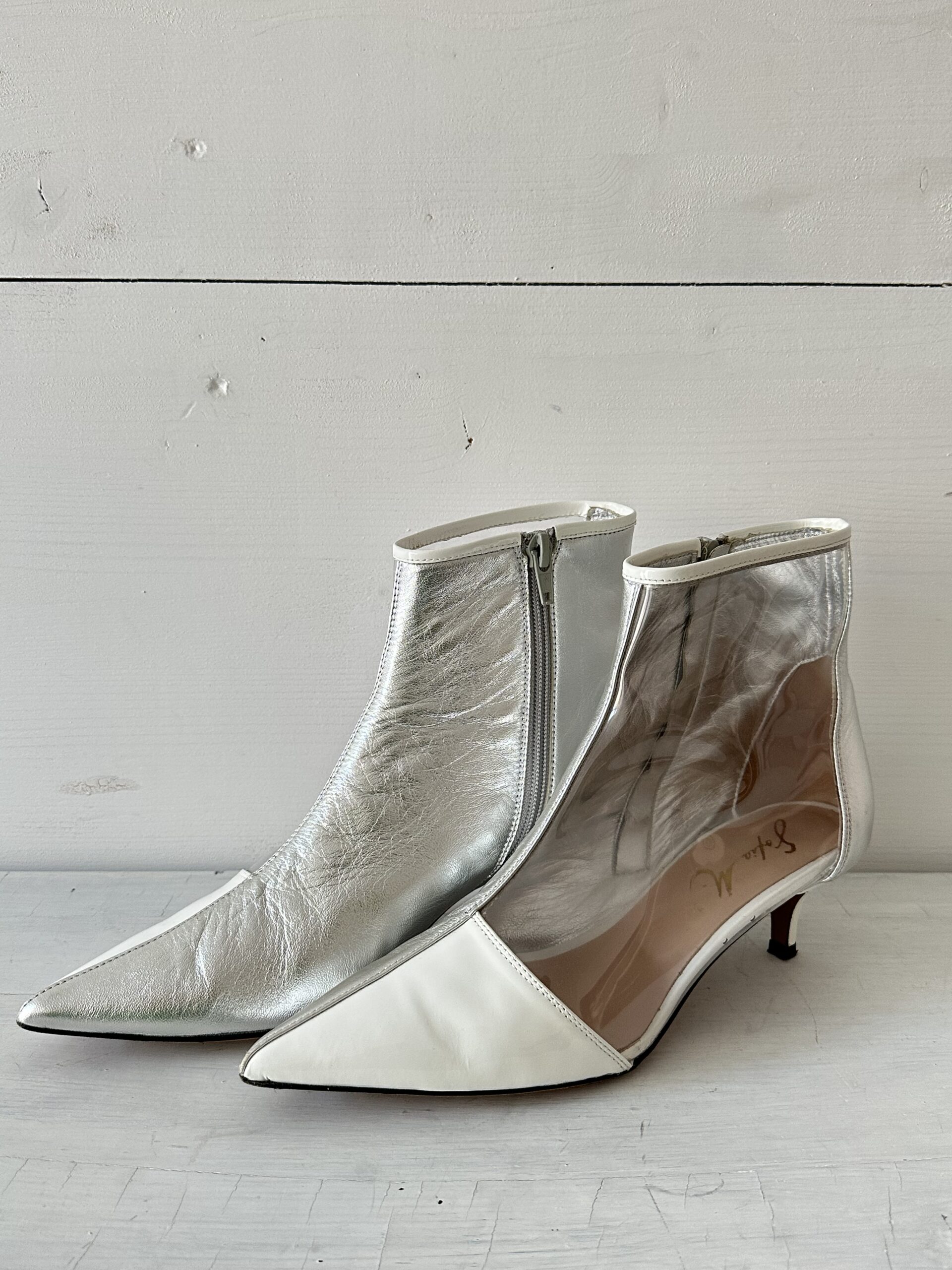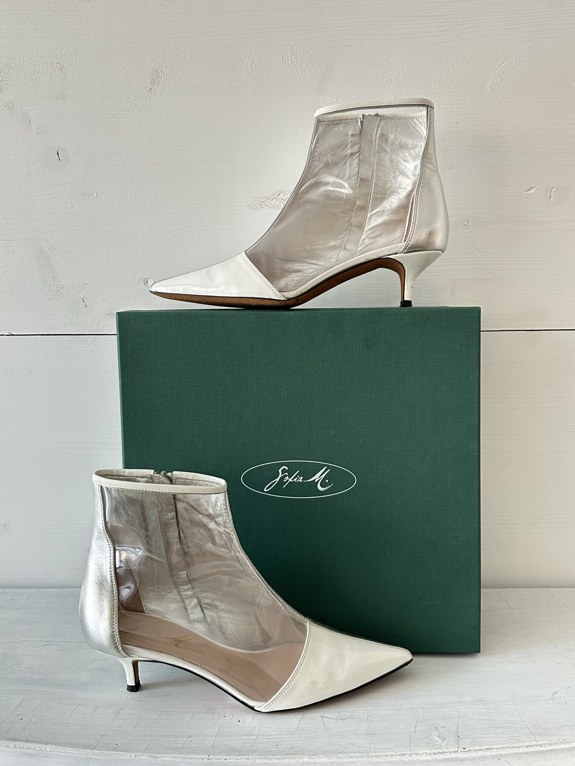 Stivaletto a punta bianco, argento e trasparente di Sofia M.